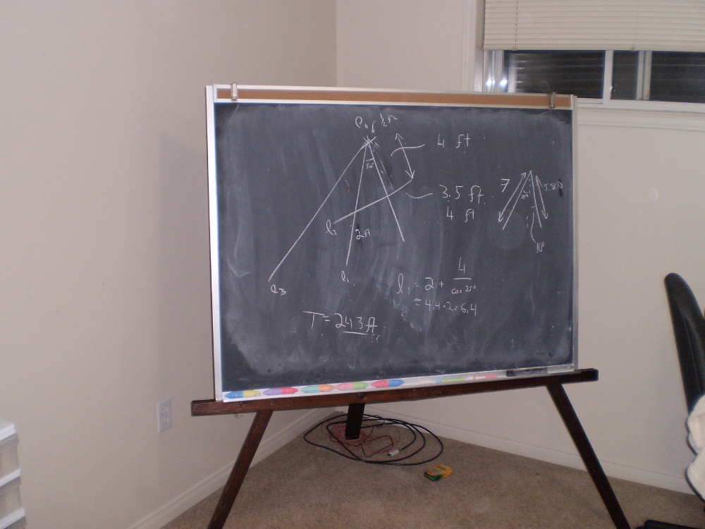 I wanted a quick way to use my chalkboard without having to sit on the floor all the time. So here was my solution: an easel to hold it up. My sincere apologies for the imperial measurements in the BoM. Even in Canada that's still the way it's done :(. The schematic scale is in centimetres.